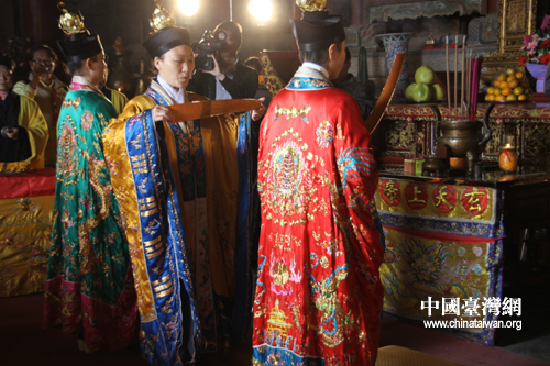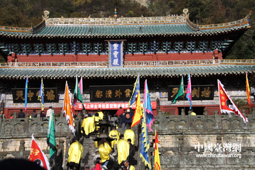 玄天上帝金身赴台圣驾巡境供奉仪式在武当山紫霄宫举行。(中国台湾网 李丹 摄)