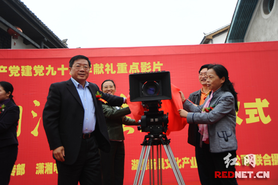 (湖南省委常委、宣传部部长路建平、湖南省委宣传部副部长魏委等领导为电影开机揭幕。)