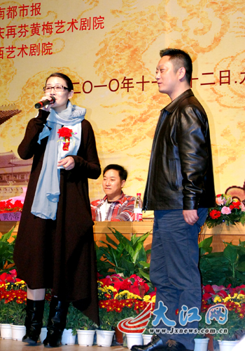11月12日,黄梅戏江西行——南昌首演新闻发布会在江西艺术剧院举行。(本文图片均由大江网记者朱正摄)黄梅戏领军人物韩再芬现场献艺江西的黄梅戏戏迷抓拍黄梅领军人物韩再芬韩再芬现身南昌,开始准备首演的筹备工作。韩再芬在黄梅戏《女驸马》演出中的舞台形象(资料图片)大江网讯记者朱正报道:增进赣皖两省文化交流,繁荣江西演出市场。11月12日,大江网记者从“黄梅戏江西行”新闻发布会上获悉,“黄梅戏江西行”活动将于11月21日至24日正式登陆江西,中国戏剧家协会副主席、著名黄梅戏表演艺术家韩再芬等一批优秀黄梅戏国家演员将登台献艺。