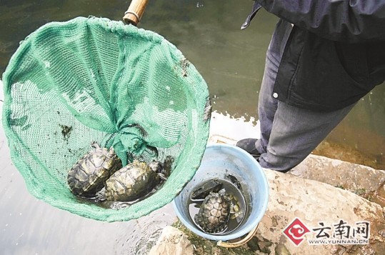 警惕危险性外来入侵物种 近百只巴西龟被放进盘龙江