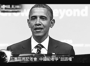 奥巴马:你的英文比我的中文要好,但是公平起见,该轮到韩国记者提问,所以,我想,你……