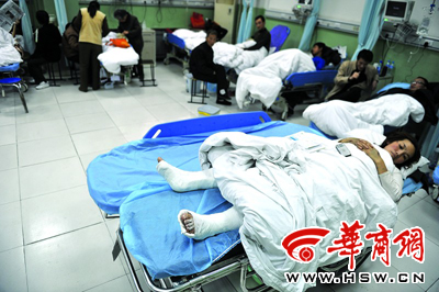 昨日下午,在西安交大一附院急诊留观室里,31岁的四川籍女子夏江华静静地躺在病床上,双腿打着厚厚的石膏,由于没钱缴纳药费,医院对她的用药已暂时停止。“以前我们也会争吵,但没想到这次他会下这么重的手……”夏江华忍着泪说,2001年她和丈夫在四川结婚。几年前,他们带着一儿一女来到西安后便在长安区郭杜北村租住。“家里共有五口人,除过我们夫妻和两个孩子外,81岁的公公也一直跟着我们一起生活。”