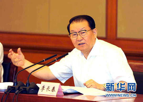 资料图片:8月27日,中共中央政治局常委李长春在重庆主持召开国家“十二五”时期文化体制改革和发展规划纲要编制工作调研座谈会。新华社发(万难摄)