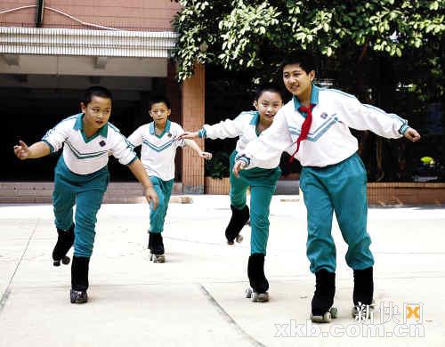 昨日下午1时许,记者来到晓港湾小学,在长约45米、宽约20米的场地上,8名学员正在邓永泉教练的指导下进行训练。他们都是小学生,最大的有12岁,最小的则仅有8岁。在训练场上,这些孩子时而张开双臂,伸出一只腿,仅靠一只脚向前滑动,恰如一只燕子在低空飞翔。有的蹲在地上,仅凭一只脚原地旋转起来,很像一只陀螺。