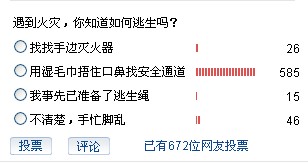 民调结果显示,绝大多数网友了解基本的逃生方法。
