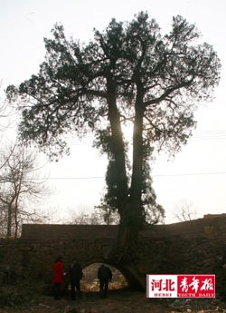 赞皇是石市的古树大县,有千岁以上古树35株。郭建朝说,这棵古树已被挂牌保护,也有专人看护,一切人为工程都必须为古树让路。赞皇县林业局技术站每年冬夏还要巡视两次,为古侧柏“问诊”,防治病虫害。村里人也都知道侧柏是棵稀罕物,都很自觉地保护它。