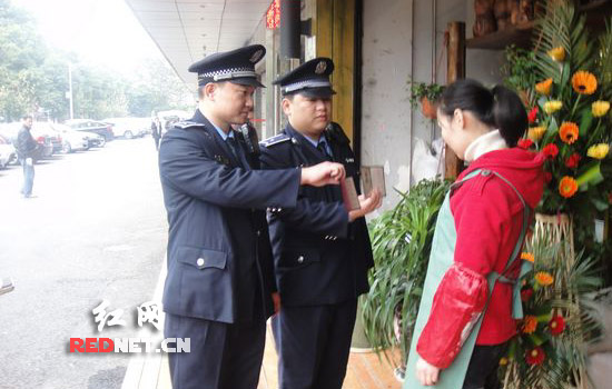红网株洲11月18日讯(株洲分站记者 青琪 通讯员 张开耀)“老板,您好,花篮摆在店外影响了市容市貌,请配合我们的工作,将花篮搬进去,入店经营。”今日上午,两名城管队员对湖南省株洲市天元区长江北路花之缘鲜花店的出店经营行为,进行文明劝导,并帮助店主将花篮搬入店内。与此同时,株洲市城管部门“文明用语月”活动也正式进入实施阶段。