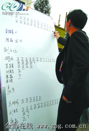 在昨日海选的公开计票阶段,唱票小组对378张收回的选票逐一念票声中,“朱波”这个名字此起彼伏。最终,朱波以344票的优势当选新一届村委会的主任一职。