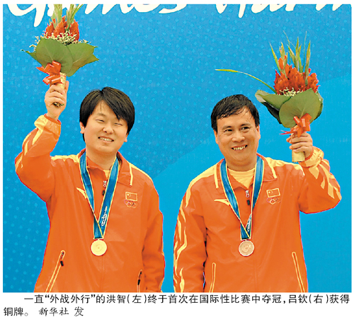 亚运会的夺冠难度肯定比不上国内比赛,按理说在国内已处顶尖行列的洪智应该不会担心这种比赛,但奇怪的是,之前洪智参加过多次国际比赛却没有一次夺冠。1998年亚洲少年赛,18岁的洪智首次代表国家队出征,最后一战只需和棋即可夺冠,却后手败给越南阮成保而屈居亚军,阮成保成为唯一一位非中国棋手的亚洲冠军,中国男队每次夺冠的神话被打破。其后2001年亚锦赛、2007年世锦赛、2008年世界智运会男子个人赛,洪智又3次代表中国队出赛,结果3获亚军,简直成了外战的“千年老二”。去年亚锦赛洪智半决赛中竟先手输给了中华台北队的马仲威,最终只获季军。对在国际性比赛中从未夺冠这一点,洪智自己的解释是:对这种比赛重视不够,对自己的对手也重视不够。但行家却认为是洪智在这种比赛中放不开,想赢怕输的心理让他发挥不佳。最典型的一次是,去年与马仲威一战,对手只是一个业余高手,洪智竟紧张到技术变形。这一次,洪智以7战5胜1和1负积11分获得男子冠军,终于改变了世人对他“内战内行,外战外行”的评价。