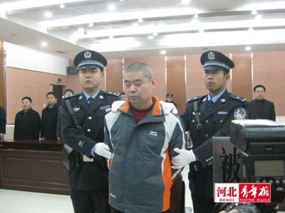 ■在法庭上听到死刑判决后,李海涛绝望地闭上了双眼