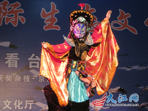大江网讯 记者叶新阔摄影报道:京剧变脸相信很多市民都看过,但用木偶人物来表演京剧变脸又会是怎样一番感觉?11月22日,在鄱阳湖生态文化节上,来自江西省木偶剧院的艺术家们用手中的木偶表演了京剧变脸等多个节目,吸引了不少市民驻足观看。