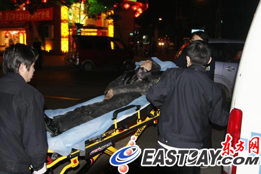 沪一男子醉酒当街晕倒呕吐 各方相助将其送医[图]