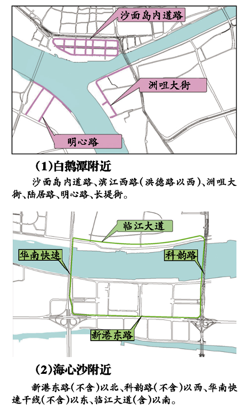 西面:广州大道、江月路、下渡路以东,含二沙岛区域;