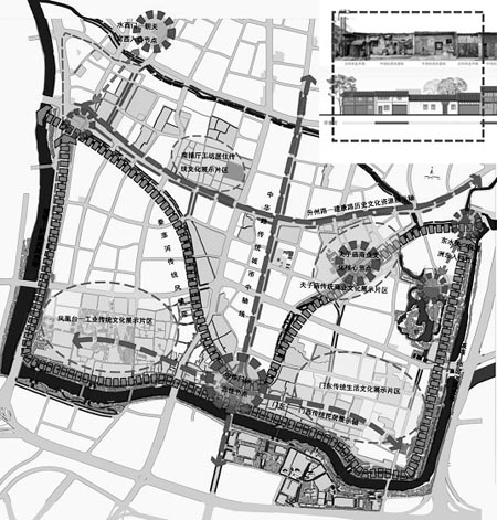 和以前大拆大建的不同,新版规划提出“小规模”、“院落式”、“全谱式”地保护整治各类、各时期历史文化资源,按此原则对南捕厅及门东、门西等重点地段按地块进行城市设计,对未拆迁地块分别给出老建筑整治措施。