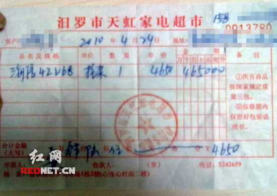 向先生向红网“消费维权”栏目发帖投诉称,今年4月,他在汨罗市一电器商场花费4650元,购买了一台海信42V68PKA液晶电视。“购买前,我在网上查看了资料,电视支持多数高清电影文件,又经常看到海信的广告,所以就毫不犹豫的选择了这一款。”
