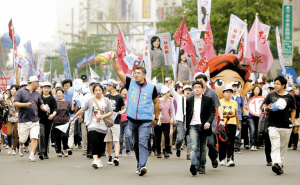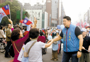 (下图1)11月21日,连战儿子连胜文在台北选举游行队伍中,个子高高非常显眼。