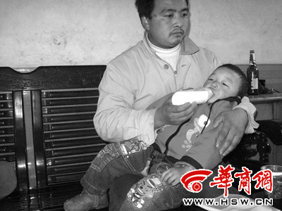 昨日上午11时许,王辉和张萌两岁半的儿子“毛蛋”,在外公家的院子里玩着玩具。不一会儿,小家伙玩累了,便躺在父亲怀中,喊着要喝奶。王辉赶忙给儿子冲了一瓶奶,“毛蛋”一边喝着奶,一边咂着嘴。看着怀中的“毛蛋”,王辉的表情极其复杂。