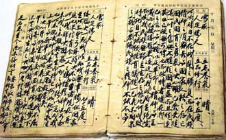 蒋中正日记在胡佛研究所档案馆公开,上方为蒋日记原件,下方是档案馆以日记制成的微缩胶片。胡佛研究所并将复印件开放阅览。图片来源:台湾《联合报》