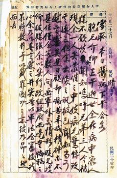 九一八事变后,蒋中正在10月9日写上“雪耻 人定胜天”标题,“对日不在战斗之胜负,而在民族精神之消长与国家人格之存亡”的心境,且指出“不能不与倭寇决一死战”。图片来源:台湾《联合报》