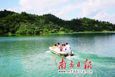 游益塘可以乘坐飞艇、豪华游船作环库游,观赏大小300多个库湾和栽满荔枝、柑橙等水果的翠绿群山。一个个浮在水面的荔枝孤岛,每一座岛都有一个很好听的名字,印象最深的是两个相连的小岛,被命名为“心心相印岛”。游客置身于船在漂、山在转、鸟在飞、鱼在游的湖光山色童话般的美景里,尽情享受无穷的乐趣。
