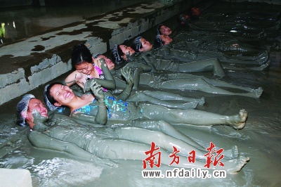 不要因为热矿泥有各种功效而长时间在里面“滚”,因为池中的温度稍高,“滚”久了体力消耗大,每次应以15分钟为宜。