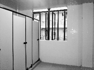 “站在4楼的走廊,连女厕也看得一清二楚,真是羞耻呀。”住在2楼的居民钟女士大倒苦水说,她10岁的女儿每次从走廊经过都要扭过脸,很难为情。“我女儿建议用布把走廊遮住。我们也不知道找谁投诉。”