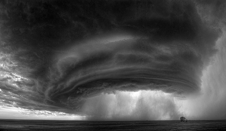 电工肖恩·希维是一个追踪风暴的摄影爱好者,他说:“‘上帝之眼’是一个超级单体风暴,直径大约有5到10英里,风速约为85英里。我整整跟踪拍摄了两个小时,拍了400多张照片。在太阳即将落山的那一刻,我抓拍到了几张色调很强烈的照片。我觉得如果你能走到风暴中心抬头往上看,你就能够看到上帝的眼睛。”