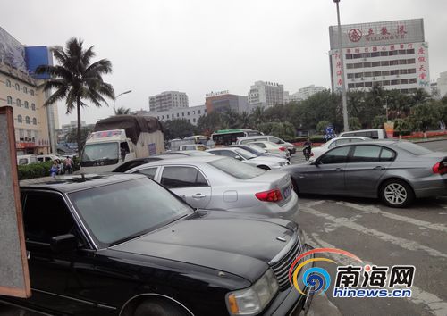 导流岛内停满了各式机动车辆(南海网记者杨振东摄)
