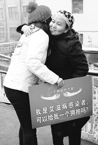 11月27日,乌鲁木齐市天山区疾病预防控制中心组织“一个拥抱的力量”公益活动,7名宣传防治艾滋病知识的志愿者身着统一服装,在街头征集拥抱,以期唤起社会对艾滋病病毒感染者的关注和关爱。 乌鲁木齐市天山区疾控中心供图