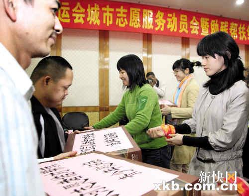 昨日,来自石牌街、沙河街、龙洞街等天河区主要街道的残障人士代表与志愿者代表结成互助帮扶组。据介绍,结成帮扶组后,志愿者要开展“六个一”活动:共同游览一次新广州、共同观看或收听一场亚残运比赛、实现一个成长心愿、每周一个关爱电话、每月一次上门探访、教授一项工作技能。