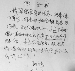 外遇公务员向妻写下50万元保证书