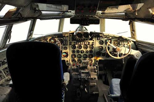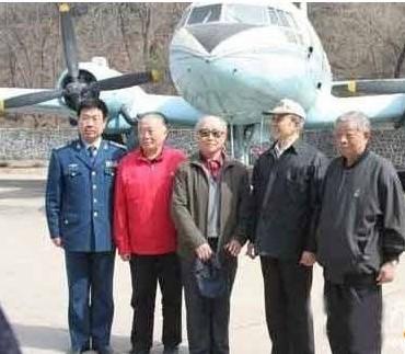 左起:齐贤德馆长、周福明、钱嗣杰、田云毓、陈长江在飞跃拉萨的伊尔-12机前合影。