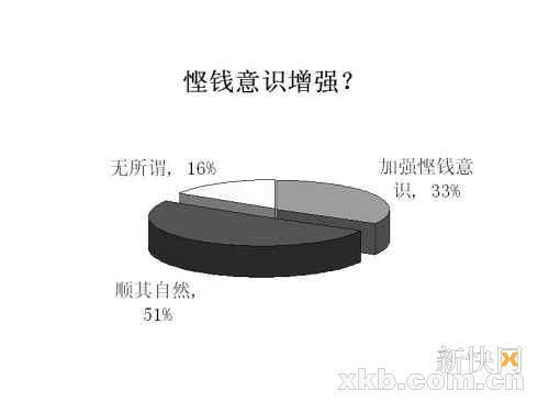 有16%的受访市民认为无所谓。“做人不能天天计较一些芝麻绿豆大的小事。与其天天想着省钱,还不如想想怎么多赚钱。”某投资担保公司周总表示,通胀后生活成本肯定会上升,最有效的方法是开源,而不是节流。