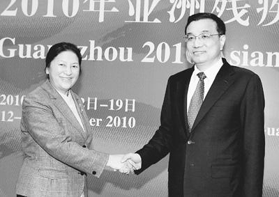 十二月十二日晚,国务院副总理李克强在广州会见来华出席广州亚残运会开幕式的老挝国会副主席巴妮。