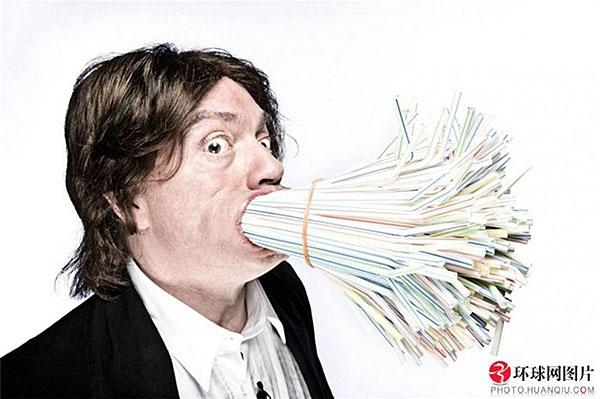 德国巴伐利亚州一名男子可以同时将最多400根喝饮料用的吸管塞进他嘴中,并保持10秒钟。