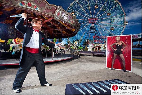 美国人戴维·阿达莫维奇2007年12月26日在纽约表演时,在1分钟内朝同伴身旁投掷了102把刀。