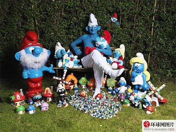 来自诺丁汉的Stephen Parkes获得这一奖项,他共收集了1061个“蓝精灵”。图片是他和部分藏品合影。