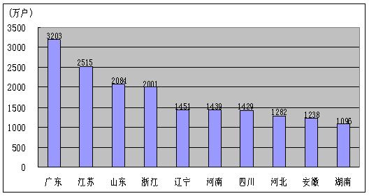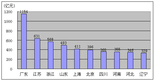 图11. 2010年1-11月电信主营业务收入排名前十名的省份