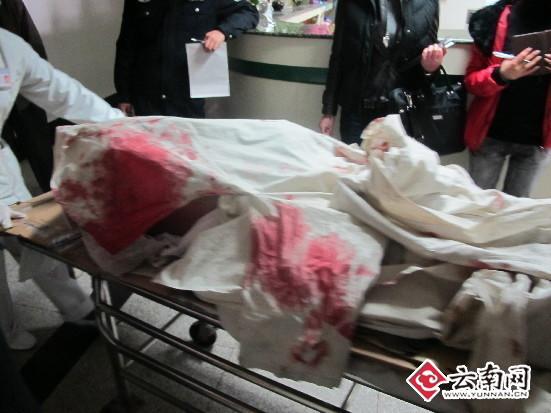 在延安医院的急救现场,被鲜血染红了的床单。记者 方民/摄影