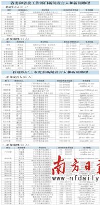 省委办公厅副主任郭跃文:发布将更灵活从明年开始,省委的新闻发布工作将区别情况,采取更加灵活多样的发布形式,包括召开新闻发布会、组织集体采访、互联网访谈,答复记者朋友们的提问和回应网民的问询等等。省纪委常委、秘书长王兴宁:回应社会关切我们将定期通报全省党风廉政建设和反腐败工作进展情况、省纪委查处的重要案件情况以及对新闻媒体有关报道作出回应和事实说明,回应关切,释疑解惑。省委组织部副部长张辉:阳光公正选才组织部门是干部之家、党员之家、人才之家。我们将以提高公开性和透明度为重点,以树立组织部门良好形象、提高选人用人公信度为目标,进一步加强与新闻媒体的沟通合作。省委宣传部副部长、省广电局局长杨健:搭建沟通平台省委宣传部既是新闻发言人制度的实践者和参与者,又担负着新闻发言人工作的指导、管理的责任。我们将为党委部门搭建新闻发布的平台,畅通新闻媒体和党委部门联系的渠道。省委统战部副部长赵健:广交党外朋友统战部是广交党外朋友的工作部门。我们将重点宣传民主党派、工商联和无党派人士在参政议政、民主监督、为广东现代化建设服务方面的业绩。省委政法委副秘书长、维稳办主任陈文敏:欢迎舆论监督政法委已建立网络发言人工作制度,在人民网等多家网站集中交办回复了网民留言。我们欢迎也将主动配合新闻界的朋友做好舆论监督,抓好政法队伍的建设,保证公正廉洁的司法。省委政研室副主任吴茂芹:“参谋”纳民意省委政策研究室是大家通常说的“参谋班子”。今后将借助新闻媒体,使我们制订的政策能更好反映民意,也让公众能更好了解省委的政策,使省委决策转化为全省人民的实际行动。省委台办副主任蒋长芳:及时发布信息广东是祖国大陆对台工作的重点省份,粤台间年贸易总额超过400亿美元,今年我省赴台旅游的民众超过18万人次。我们将及时准确发布涉台信息,成为联系媒体和社会公众的桥梁纽带。省直机关工委副书记周建民:加强党务公开省直机关工委坚持公开、民主、服务、和谐的理念,注重党务公开信息发布工作。感谢媒体对我们的关心支持,随着党委新闻发言人制度的建立和运行,将增强我们之间的联系、交流与合作。省编办副主任陈雄贵:做好三个建立开展新闻发布工作,省编办要做好三个建立:一是建立队伍,准备把各个处的处长作为新闻信息员;二是建立制度;三是建立互信,就是我们跟媒体的互信,推动营造良好的舆论大环境。