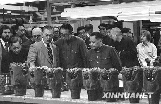 1979年2月3日,邓小平在美国休斯敦参观休斯工具公司的钻头。来源:新华社