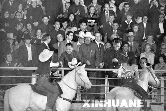 1979年2月2日,应邀访问美国的邓小平在休斯敦观看马术竞技表演。来源:新华社