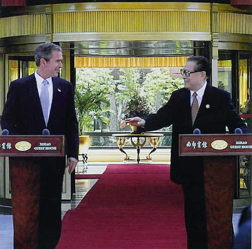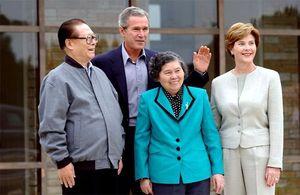 2002年10月,中国国家主席江泽民对美国进行工作访问。来源:新华社