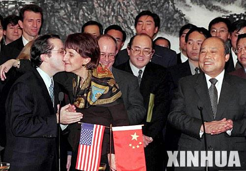 1999年11月15日,中美在北京签署关于中国加入世贸组织的双边协议,从而为中国入世扫清了最大障碍。来源:新华社