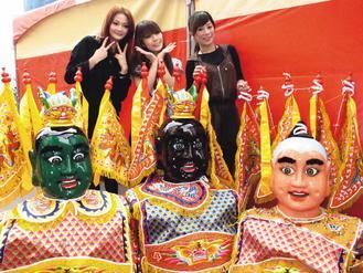 新北市板桥慈惠宫6日起封街举办“民艺大街”活动,由辣妹扮成电音三太子,大跳时下最流行的“保庇舞”。 来源:台湾《联合报》