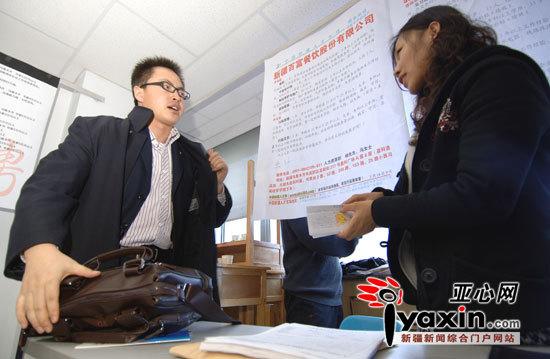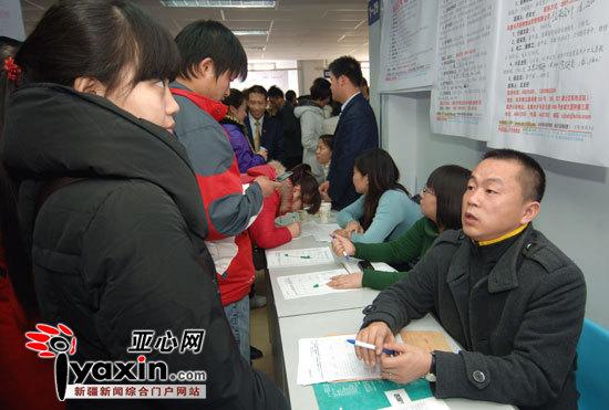 ? 图为2月19日,王文君在招聘会上散发印有岗位信息的小名片。亚心网记者 朱翊 郭玲 摄 ? ? 图为2月19日,乔雅玲在招聘会指导求职者填写个人信息,并耐心解答疑问。亚心网记者 朱翊 郭玲 摄 ? ? 图为2月19日,张玉海在发挥口才极力“游说”应聘者,描述企业的发展前景,希望能网罗到一些“高端” 人才,他旁边的墙上,张贴者每个职位相应的薪酬标准。亚心网记者 朱翊 郭玲 摄 ? ? 图为2月19日,杨海斌带着11岁的儿子一起在招聘会现场,一个看报纸,一个做作业,父子俩神态颇为相似。亚心网记者 朱翊 郭玲 摄 ? ? 图为2月19日,新疆国际博览中心春季人才交流会现场,黄锴拿着包装袋在招聘现场介绍。亚心网记者 朱翊 郭玲 摄 ? ? 图为2月19日,段红手举写着招聘信息的白纸在人群中寻求“有志之士”。亚心网记者 朱翊 郭玲 摄 ? ? ? 图为2月19日,在新疆人才市场举行的“2011年自治区首届春季人才交流大会”上,来自乌鲁木齐市名品时代建材连锁的市场营销部经理唐宏伟(右)在与一位求职者交流。亚心网记者 朱翊 郭玲 摄 ? ? 图为2月18日,新疆百富餐饮股份有限公司人力资源总监白玉成(左)在与同事商量如何设计招聘信息表。亚心网记者 朱翊 郭玲 摄