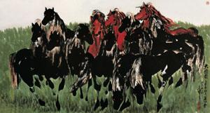 八骏图 280cm×760cm庆祝新中国成立60周年应邀阎飞鸿先生为人民大会堂创作巨幅作品