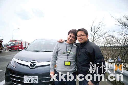 ■这就是我们的"英雄"司机!古川(左)与本报记者合影。新快报特派日本记者温建敏/摄