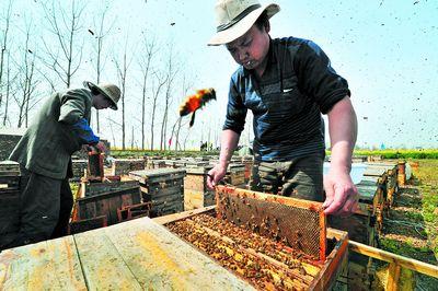 春暖花开,常德西洞庭湿地生态保护区正是油菜花烂漫之时。除了络绎不绝的游人,漫山遍野的油菜花每天还引来了靠养蜜蜂为生的采蜜人。昨日,记者来到湖南明园蜂业的常德采蜂基地,目睹了蜂农们忙碌的采蜜工作。