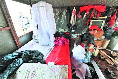 简陋的帐篷里只有一张床、一口灶、两个煤气罐子、一个柜子、一台可以收到2个频道的太阳能电视机,这里既是养蜂人栖身之处,也是他们干活的地方。图陈飞